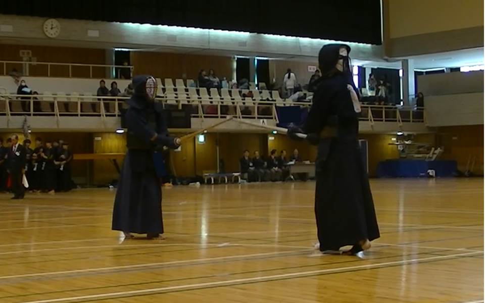 それではとこちらからジリジリと間合いを詰めて…裏から竹刀を払いながらの「面」!