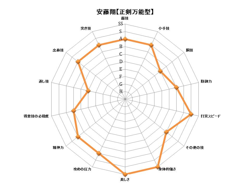 今やどのような剣道にも対応できる柔軟さ、強さを持ち合わせ、現在、地力では剣道界でも一二を争う選手ではないでしょうか。